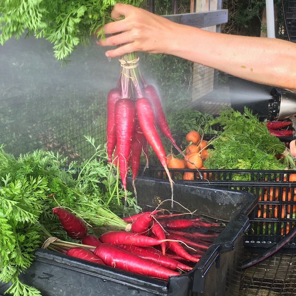 The strength of this carrot is its alluring colour and sweet flavour. It is easy to clean with a quick scrub and is delicious raw and cooked. To the children’s reward, the weakness of this carrot is the brittleness of its tops at maturity. For the market grower, you can overcome this weakness through harvesting young and at maturity through sequential plantings. Your reward is the excitement of child and adults alike, when they see them.