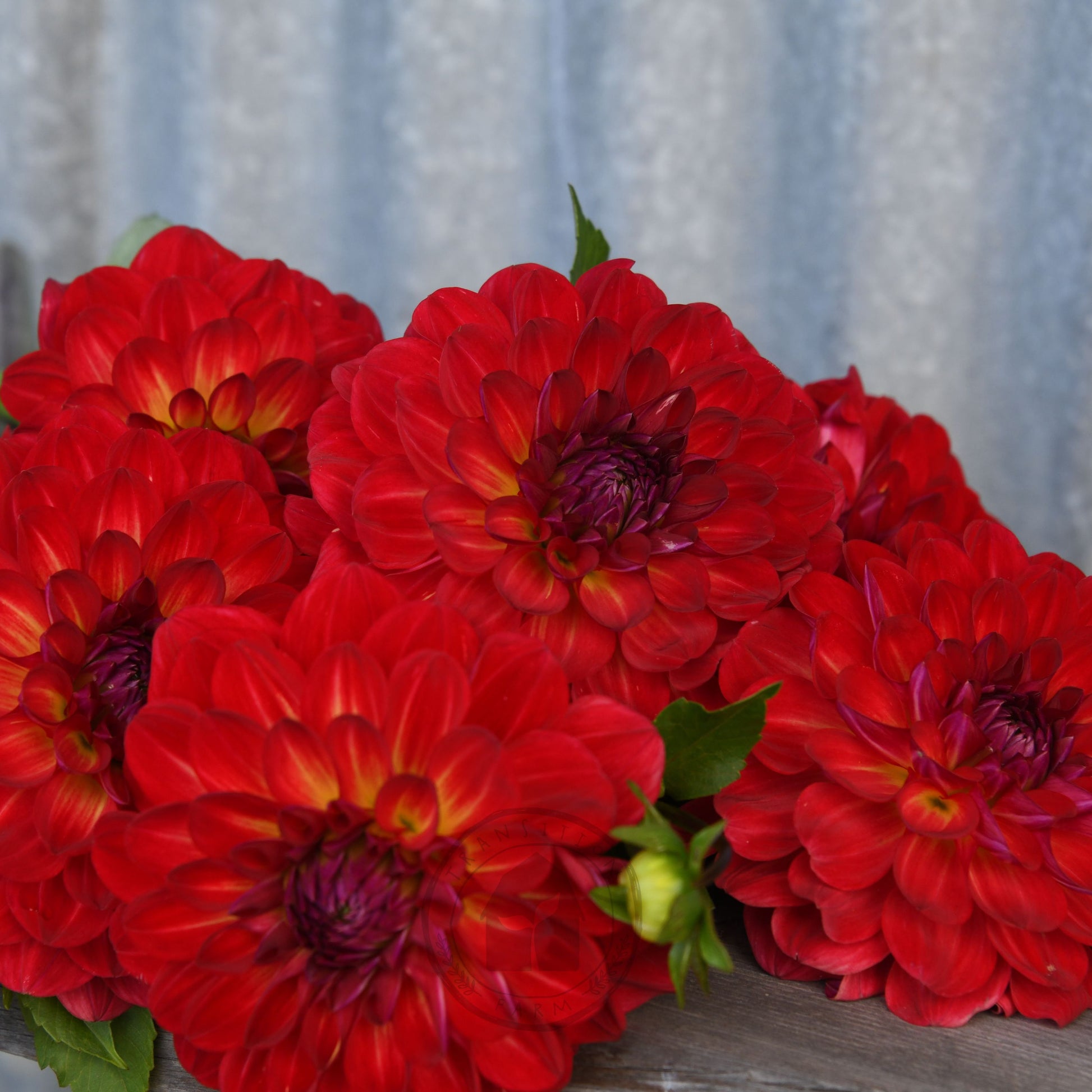 Glowing brick red petals with yellow bases and a deep violet underside fill the tall plant and make a bold Autumn statement. They combine well with other blooms and pumpkins and corn stalks