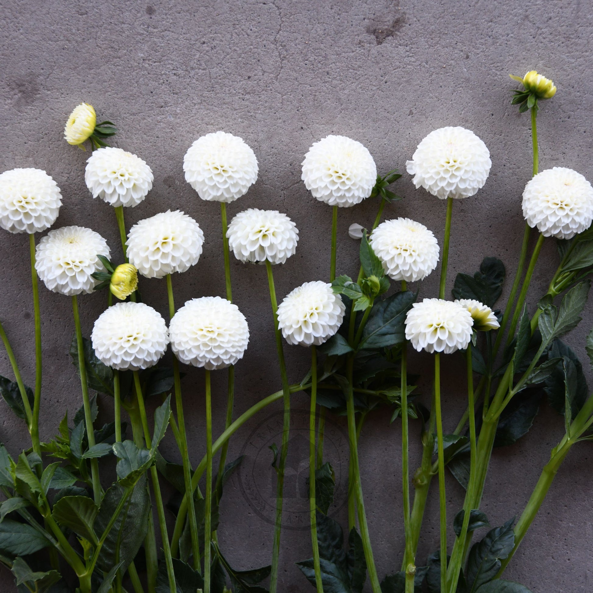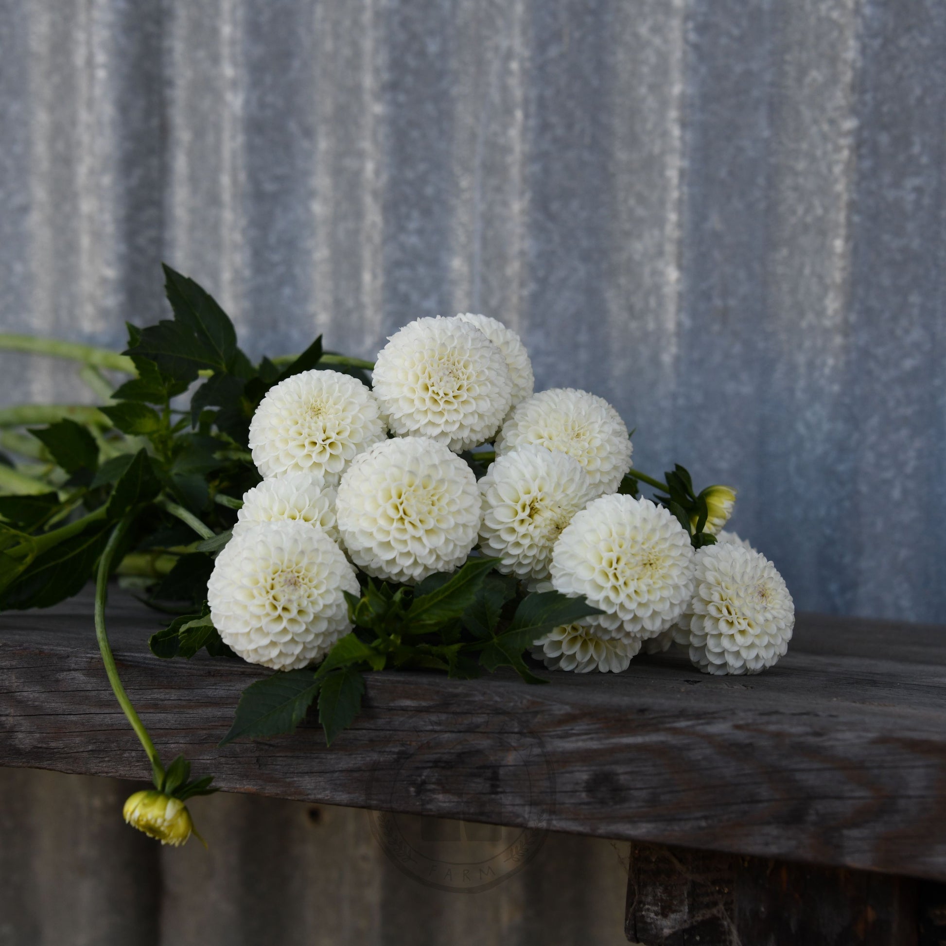 These crisp white petite, ball blooms are perfect cut flower companions. Productive plants loaded with masses of flowers on tall, strong stems from mid season through until the first frost. Resilient flowers that are more “weather proof”, they add a textual component to bouquets . Great wedding blooms - a florist and farmer favourite.