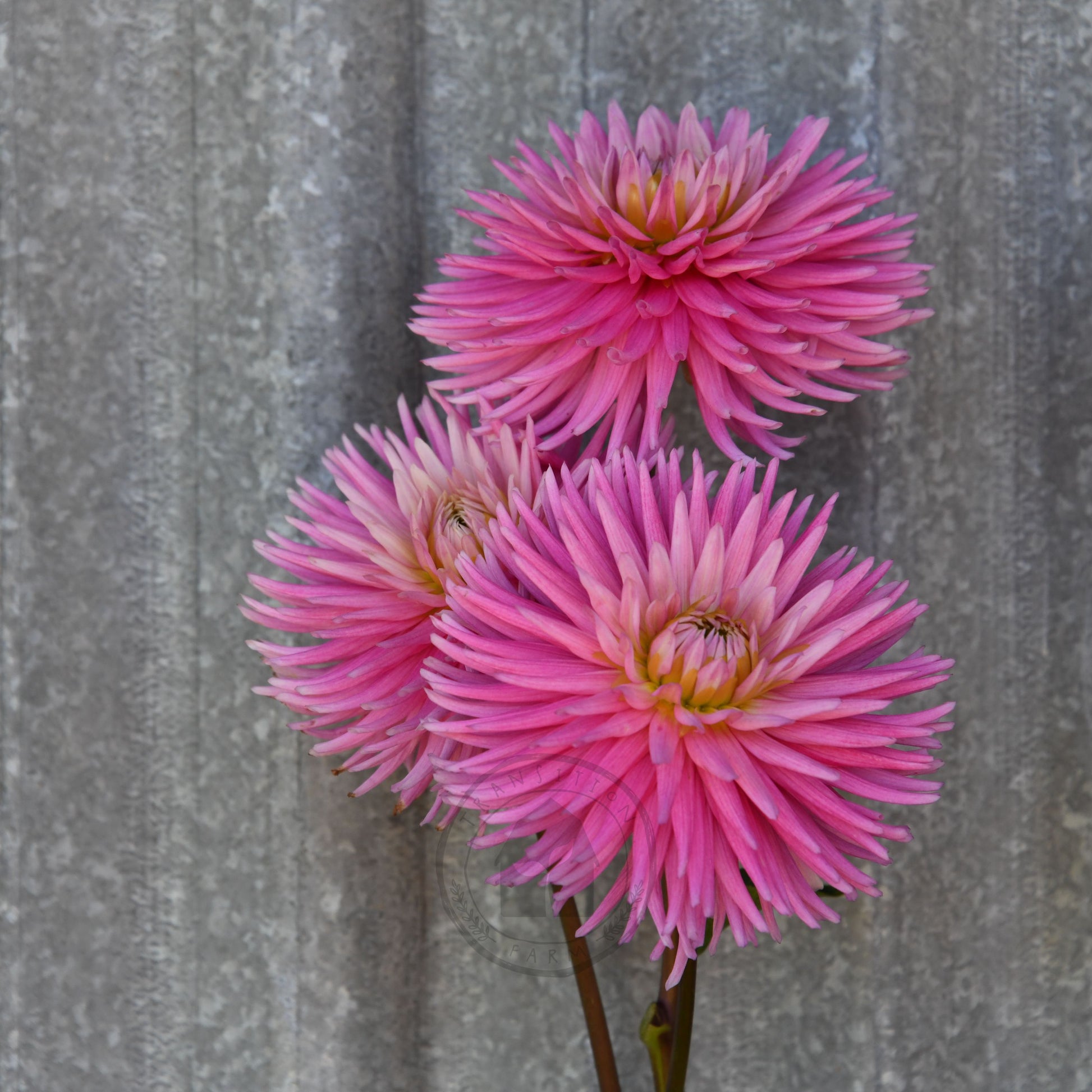 Rich pink coloured cactus type petals surround a yellow centre a top long strong stems- this prolific bloomer with a long flowering season ticks all the boxes for a wonderful cut flower.