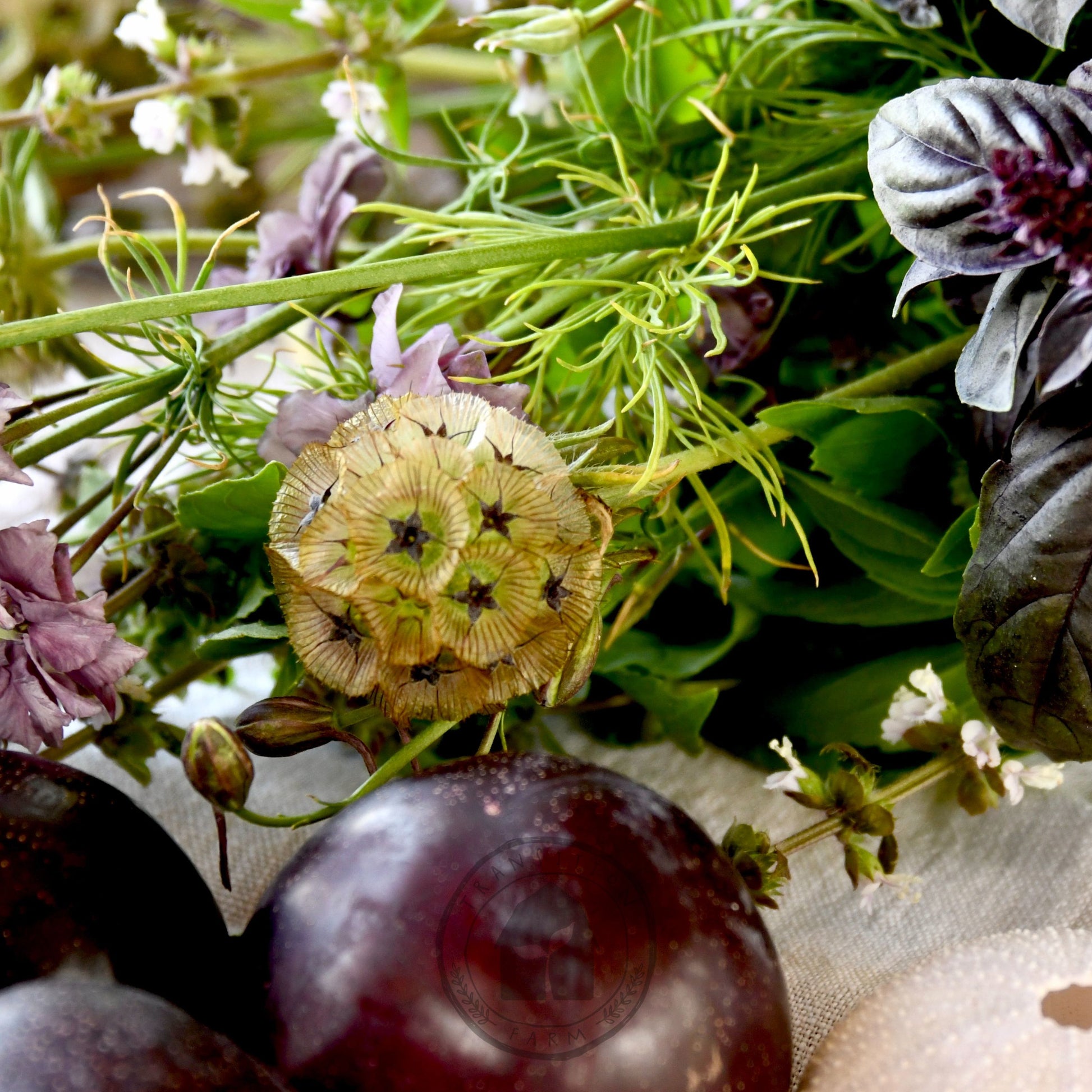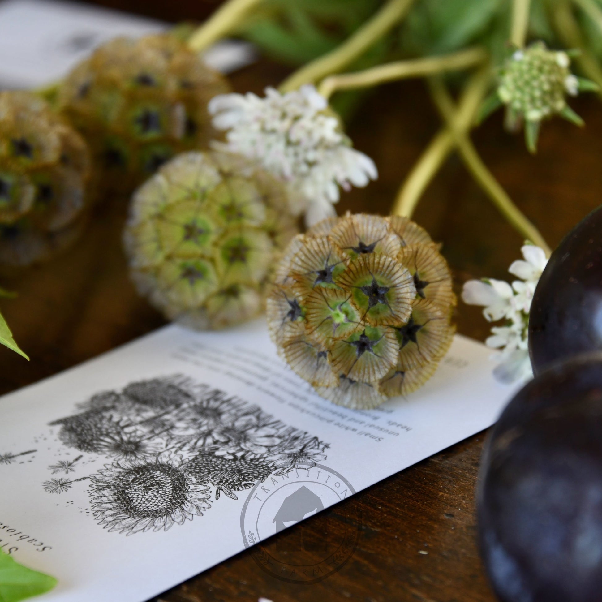 - Unusual spherical, geometric bronzy papery seed heads